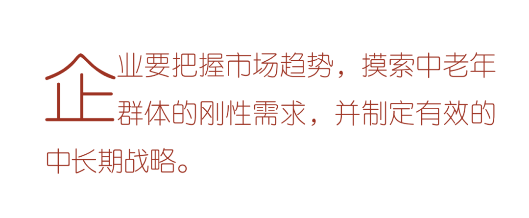 第二,企业要把执市集趋势,摸索中老年群体的刚性需求,并制定有用的中恒久政策。