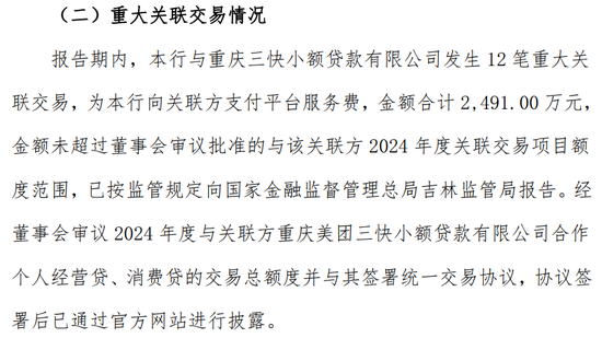 即即是领有二鼓励好意思团的深广布景,但从财报来看,亿联银行和好意思团的结合越来越少。事迹发达长远,本年三季度,亿联银行与重庆三快小额贷款有限公司发生12 笔首要关联走动,共支付平台干事费2491万元。而这一数字,在2021年至2023年同时,差别达到4.88亿元、2.05亿元、8552.98万元,可见两边的结合呈现逐年减少趋势。