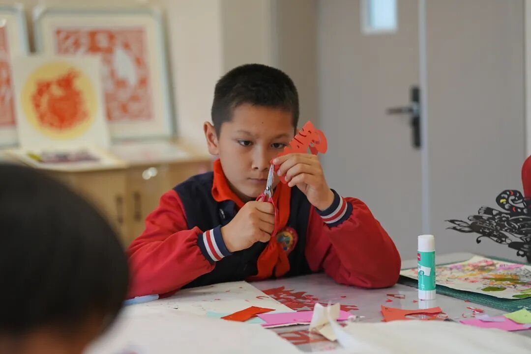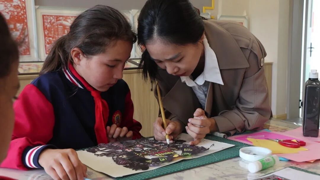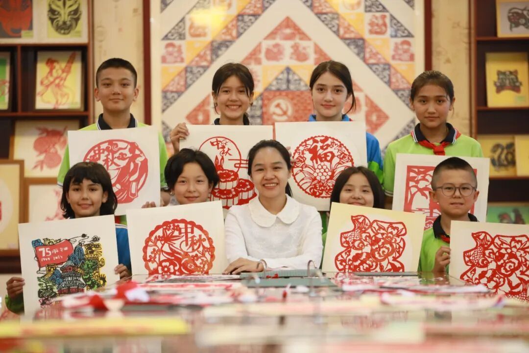 配头陆婉静也用我方的款式助力文化和会。她在学校开设了剪纸作事室,将广东岭南窗花的精细与新疆艾德莱斯绸纹样的娟秀联贯,想象出《民族合营石榴图》特色课程。潘康友每每为孩子们的剪纸作品配上音乐,良伴俩还和其他援疆教师一皆,打造了“诗韵琴声”社团,让古诗词在音乐与剪纸的衬托下,变得愈加灵活。