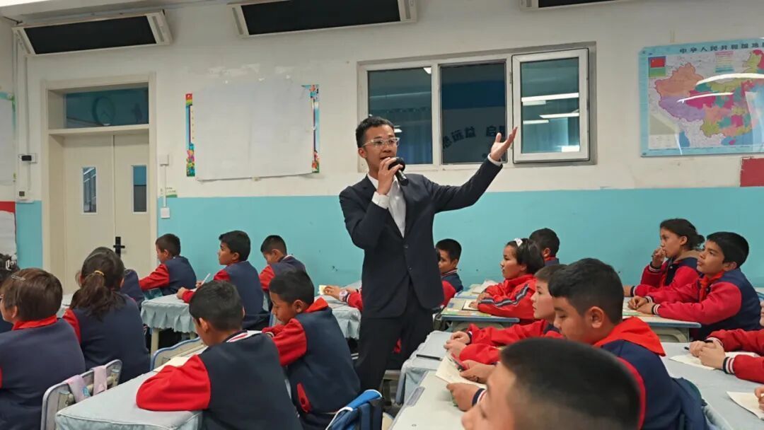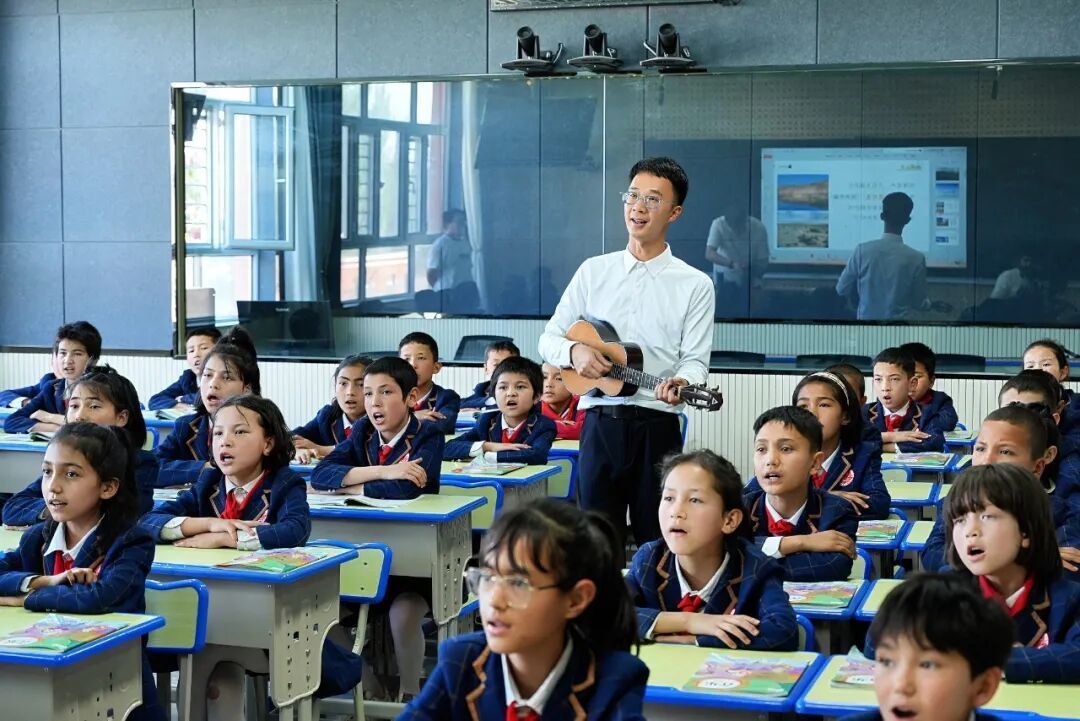 九月的疏附,曙光蔼然地漫过托克扎克镇中心小学的教训楼。教室里,轻快的琴声伴着稚嫩的童声迟缓流淌,潘康友正领导学生排演《您像春风暖心房》。“我们像石榴籽一样,牢牢依偎在你身旁”的歌声,混着窗外白杨树叶的沙沙声,在校园里久久萦绕。这是他在新疆支教的第四个岁首,从启航点独自西行的发怵,到如今全家相伴的安谧,他遥远用音符架起疏导的桥梁,以信守讲授着东说念主民教师的担当。